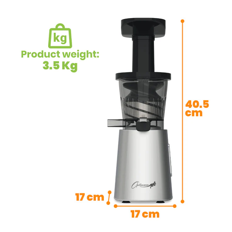 The Optimum 600M Slow Juicer is a cold press juicer that runs at a low 40-45 rpm (the slower the better), which means it can squeeze the maximum juice content out of your ingredients compared to traditional juicers.